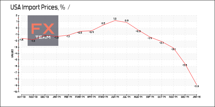 Индекс цен на импортные товары и услуги в США снизился на 2,8% за январь 2015 г. в месячном исчислении, после сокращения на 1,9% в декабре 2014 г., сообщает Бюро трудовой статистики. Экономисты прогнозировали снижение цен на 3,1%. Цены продолжили снижаться на фоне падения цен на топливо.