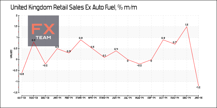 Объем розничной торговли Великобритании с учетом затрат на топливо уменьшился на 0,3% за январь 2015 г. в месячном исчислении, сообщает Национальное статистическое управление. Ожидалось снижение показателя на 0,1%. В предыдущем месяце объем розничной торговли вырос на 0,2%.