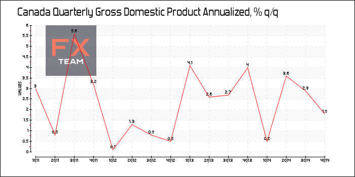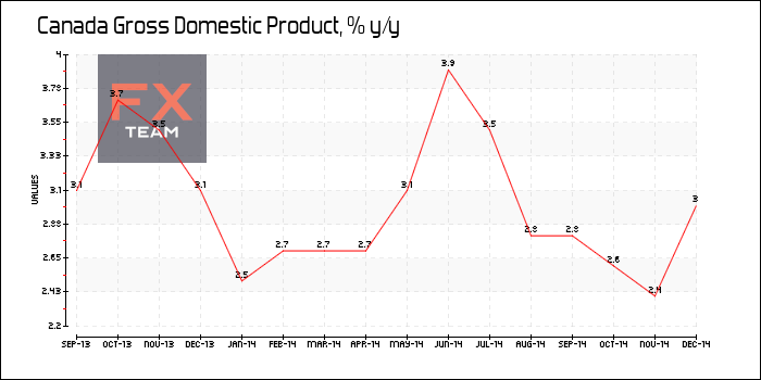 По данным Статистического управления Канады, объем ВВП увеличился на 0,3% за декабрь 2014 г. в месячном исчислении. Ожидалось повышение показателя на 0,2%. В предыдущем месяце индекс снизился на 0,2%.