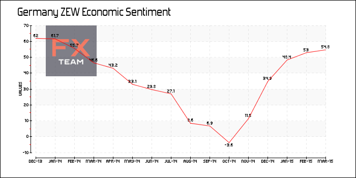 Индикатор экономических настроений вырос до 54.8 с 53 в феврале. Экономисты ожидали, что показатель вырастет до 59.4. Это было максимальное значение с февраля 2014.
