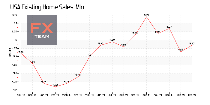 Национальная ассоциация риэлторов сообщает, что продажи домов выросли на 1.2% годовом исчислении до 4.88 млн. Январские темпы продаж без учета пересмотра составили 4.82 млн.