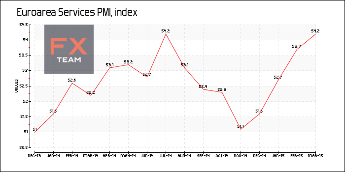 PMI в сфере услуг вырос с 53.7 в прошлом месяце до 54.3 в марте, что также превзошло ожидания аналитиков в 53.9. Вышедший также композитный индекс PMI вырос до 54.1, став максимальным значением с начала 2012 года.