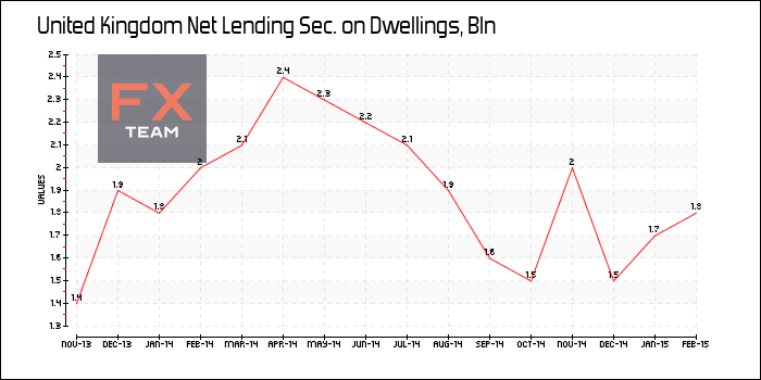 Объем ипотечного кредитования увеличился на 1,7 млрд. фунтов стерлингов в феврале по сравнению с повышением на 1,6 млрд. фунтов стерлингов в январе. Ожидался рост показателя прежними темпами. В годовом исчислении индекс вырос на 1,8%.