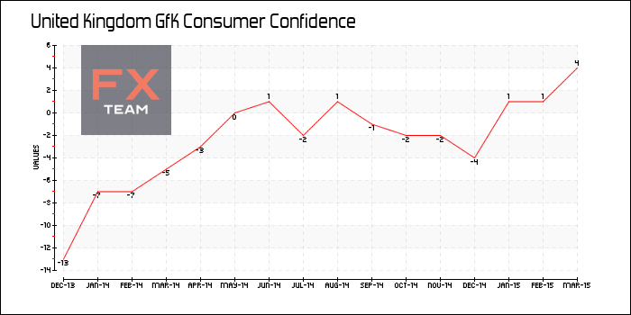 Потребительская уверенность в Соединенном Королевстве выросла до 12-летних максимумов в марте, согласно последнему исследованию Gfk, зафиксировав рост индекса на отметке +4.