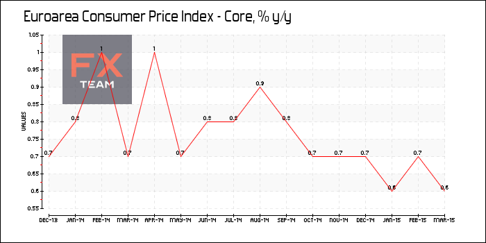 По предварительным данным статистического ведомства Евросоюза Eurostat, годовой индекс потребительских цен еврозоны составил -0,1% за март 2015 года по сравнению с -0,3% в феврале. Экономисты прогнозировали, что показатель останется на прежнем уровне.
