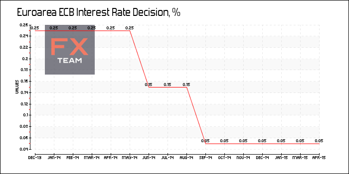 На заседании по кредитно-денежной политике, состоявшемся 15 апреля 2015 г., Совет управляющих ЕЦБ принял решение о сохранении основной процентной ставки по операциям рефинансирования, депозитной ставки и ставки по кредитам на уровне 0,05%, -0,20% и 0,30%, соответственно. Решение было ожидаемым для большинства участников рынка.