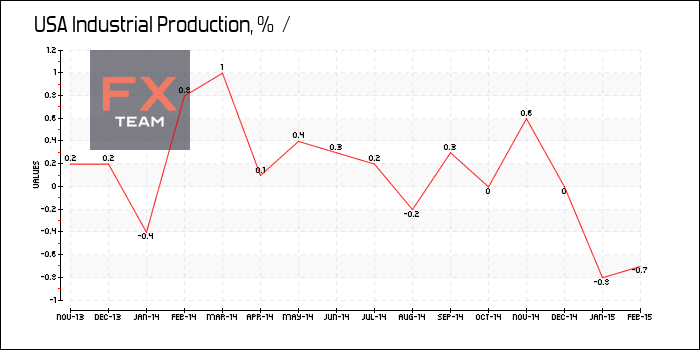 По данным ФРС США, промышленное производство упало на 0,6% в марте.