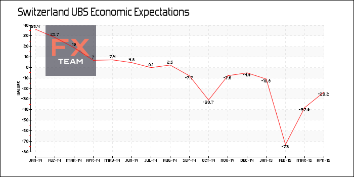Индекс ожиданий швейцарских инвесторов по данным Центра европейских экономических исследований ZEW и Credit Suisse составил -23,2 пункта за апрель 2015 года по сравнению с -37,9 пункта в предыдущем месяце.