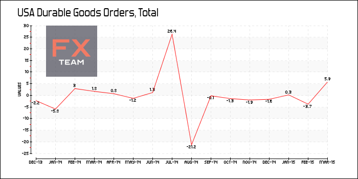 Объем заказов на товары длительного пользования (Durable goods orders) в США увеличился на 4,0% за март 2015 г. в месячном исчислении, сообщает Министерство торговли.