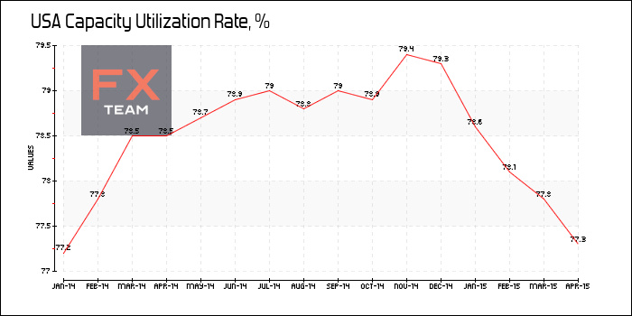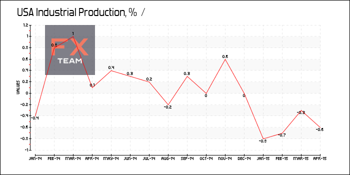 - Промышленное производство в США неожиданно упало до 0.3% в апреле