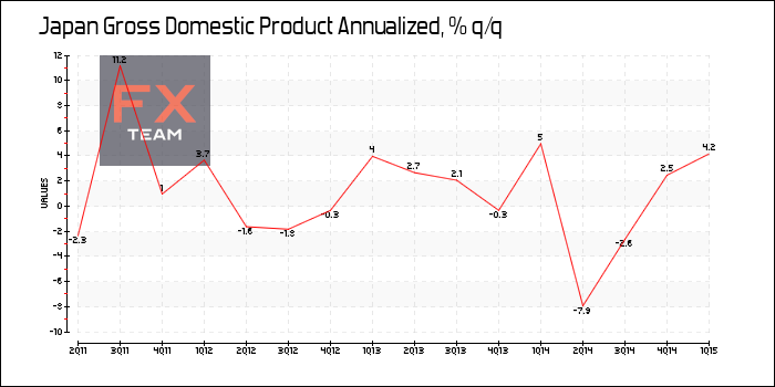 В годовом исчислении ВВП вырос на 2.4%, что также превзошло прогнозы аналитиков, которые ожидали рост на 1.6%. В предыдущем квартале рост был пересмотрен в сторону роста, составив 1.5% (первоначально опубликованное значение 1.1%).