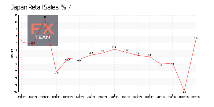 - Розничные продажи в Японии в апреле выросли на 5.0% в годовом исчислении