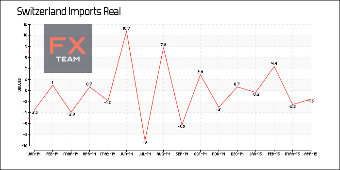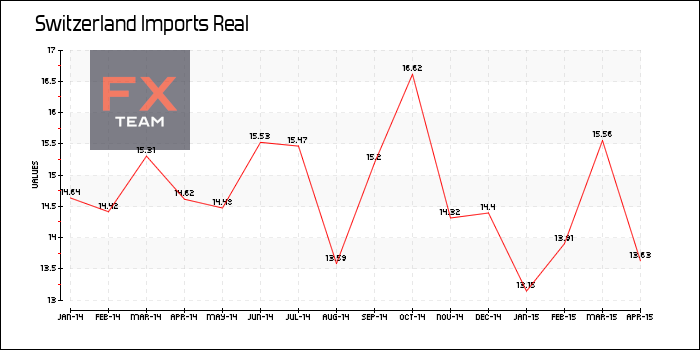 Физический объем импорта сократился на 3,0% за апрель до 13,44 млрд. швейцарских франков по сравнению с 15,47 млрд. в предыдущем месяце.