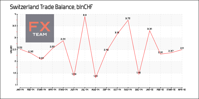 Сальдо баланса внешней торговли Швейцарии составило 2,856 млрд. швейцарских франков за апрель 2015 г. по сравнению с 2,497 млрд. в предыдущем месяце. Показатель прогнозировался на уровне 2,77 млрд.