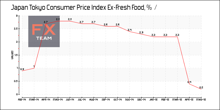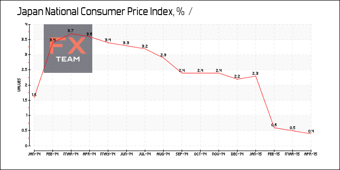 Инфляция для Токио, который считается опережающим индикатором общенационального тренда, выросла на 0.5% в годовом исчислении в мае, это медленнее, чем рост на 0.7% в предыдущем месяце.