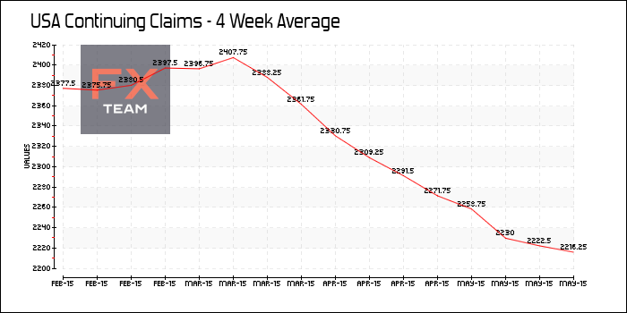 Число повторных заявок на получение пособия по безработице снизилось за неделю к 23 мая с 2 226 000 до 2 196 000 при прогнозе 2 207 000.
