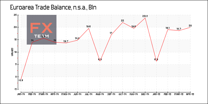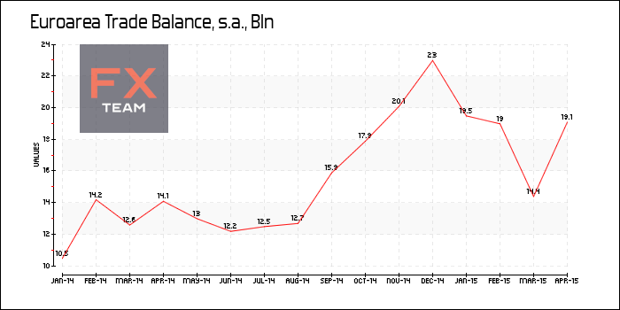 По данным агентства Eurostat, профицит торгового баланса Еврозоны составил €24.9 млрд. в апреле по сравнению с профицитом в размере €14.9 млрд. в аналогичном периоде прошлого года.