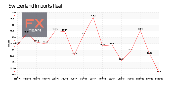В период с января по май торговый профицит составил 14.22 млрд. швейцарских франков.