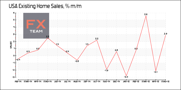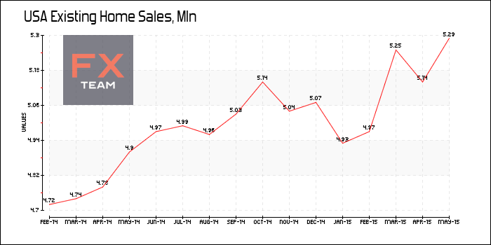 Объем продаж жилья на вторичном рынке США увеличился на 5,1% за май 2015 г. до 5,35 млн. после снижения на 2,3% до 5,09 млн. в апреле, сообщает Национальная Ассоциация риэлторов. Показатель превысил прогноз роста на 4,8% и достиг максимального уровня почти за шесть лет.