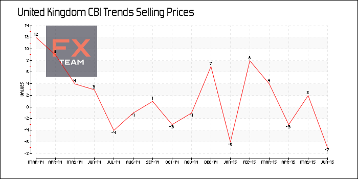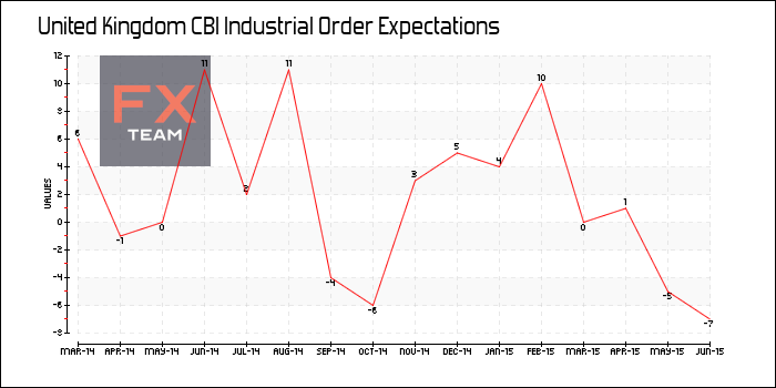 По данным Британской Конфедерации Промышленников (CBI), баланс промышленных заказов в Великобритании составил -7 пунктов за июнь 2015 года по сравнению с -5 пунктов в предыдущем месяце.
