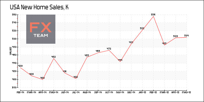 По данным Министерства торговли США, продажи новых домов возросли на 2,2% до отметки 546,0 тыс. в мае.