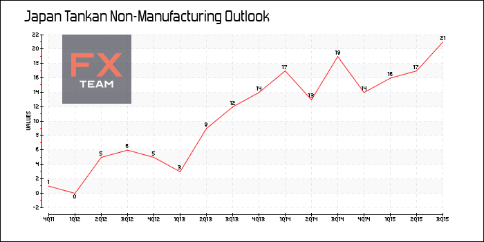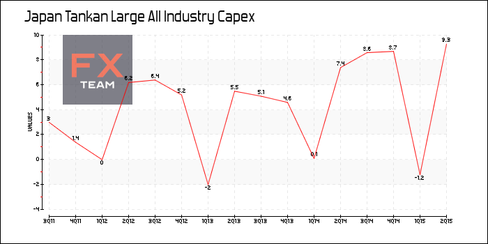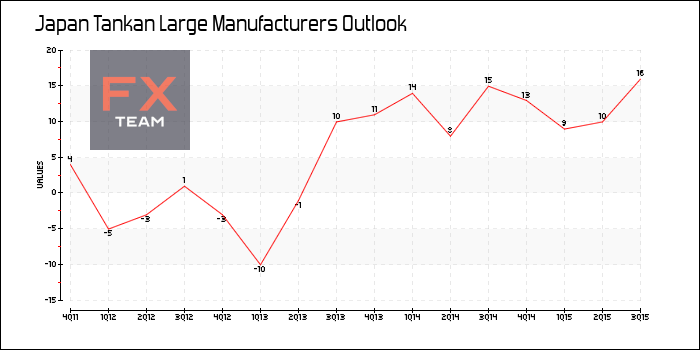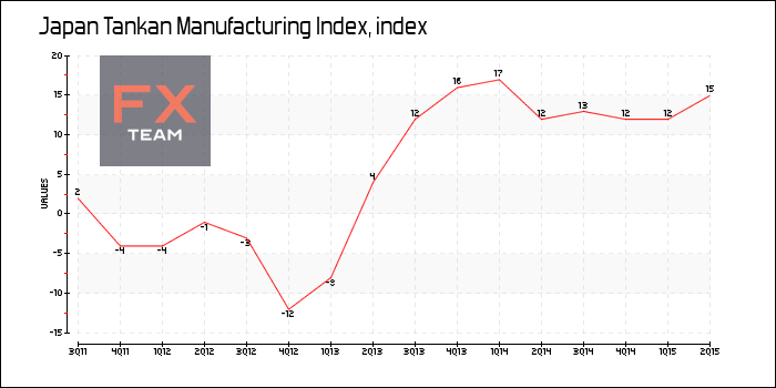 Квартальный отчет Tankan показал, что индекс для крупных производителей показал рост с 12 до 15. Аналитики ожидали, что показатель составит 12. Значение стало максимальным с марта 2014 года, до того как правительство решило повысить налог с продаж.