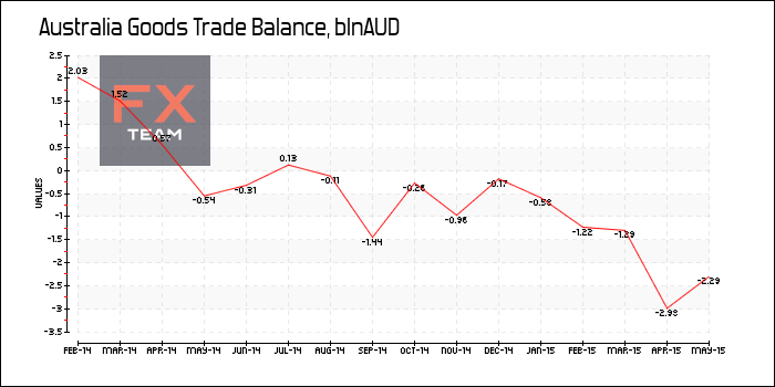 С учетом сезонных факторов дефицит торгового баланса Австралии снизился на 33% в мае 2015 г., составив $2,75 млрд. по сравнению с дефицитом в размере $4,14 млрд. в предыдущем месяце, сообщает Австралийское управление статистики. Аналитики прогнозировали дефицит на уровне $2,21 млрд.