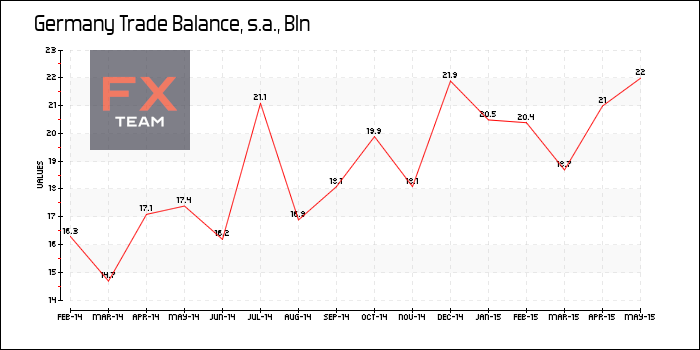 Как результат, профицит торгового баланса с учетом сезонной коррекции составил 22.8 млрд. евро по сравнению с 21.5 млрд. в апреле.