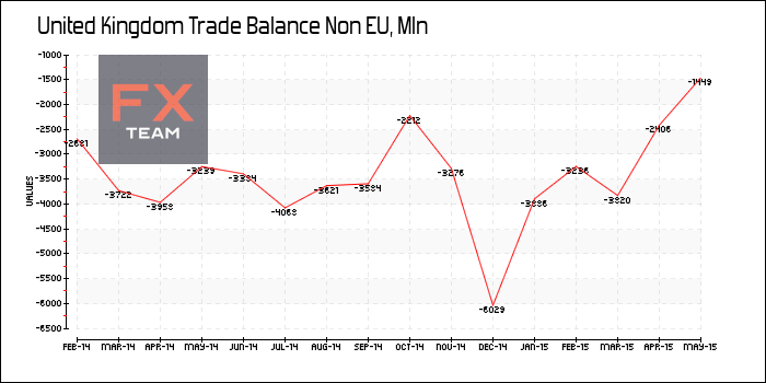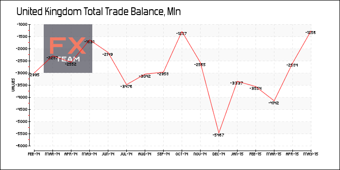Профицит в сфере услуг составил 7.6 млрд. фунтов в мае, общий торговый дефцит составил 393 млн. фунтов по сравнению с 1.8 млрд. в апреле. Оба показателя были наиболее низкими с июня 2013 года.