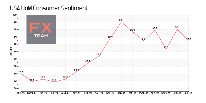 По предварительным данным Университета Мичигана, индекс настроений потребителей в США снизился до отметки 93,3 в июле по сравнению с 96,1 в июне.