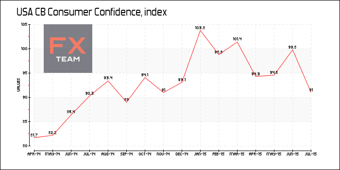 По данным Conference Board, индекс доверия потребителей упал до отметки 90,9 в июле по сравнению с 99,8 в июне.