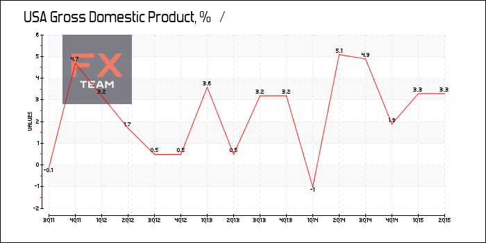 По данным Министерства торговли США, ВВП США повысился с учетом сезонных колебаний на 2,3% во втором квартале.