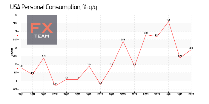 Потребительские расходы в США увеличились на 2,9% во втором квартале по сравнению с ростом на 2,1% в первом квартале. Правительственные расходы также возросли на 0,8% в отчетном периоде после сокращения на 0,1% в предыдущем квартале.