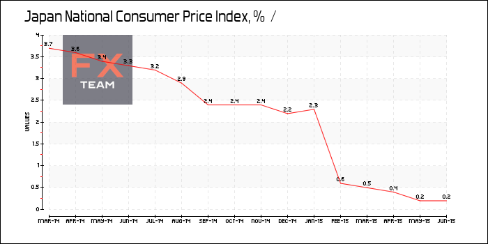 Индекс потребительских цен Японии снизился на 0,2% за июнь 2015 г. в месячном исчислении, сообщает Управление статистики.
