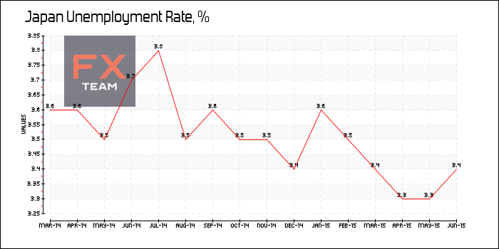 Уровень безработицы в Японии составил 3,4% за июнь 2015 г. по сравнению с 3,3% в предыдущем месяце, сообщает Статистическое управление. Аналитики ожидали, что индекс не изменится.