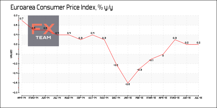 По предварительным данным агентства Eurostat, годовые темпы инфляции в Еврозоне остались на отметке 0,2% в июле.