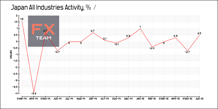 - Индекс активности во всех отраслях экономики Японии вырос меньше, чем ожидалось за июнь