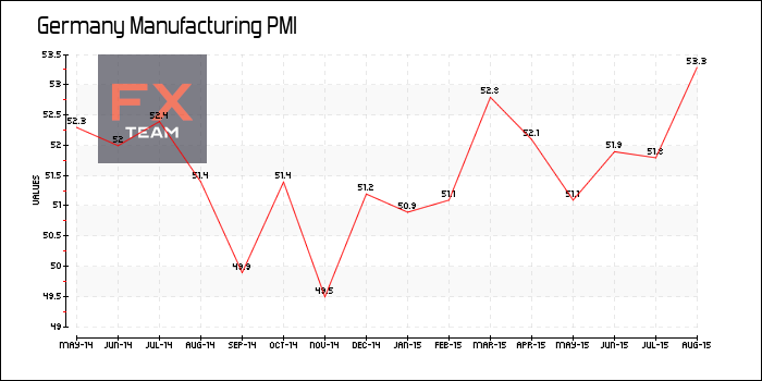 Предварительный индекс деловой активности в производственном секторе Германии (FlashManufacturingPMI) составил 53,2 пункта за август по сравнению с 51,8 пункта в предыдущем месяце, сообщает MarkitEconomics. Это максимальное значение показателя за 16 месяцев. При этом ожидалось снижение индекса до 51,7 пункта.