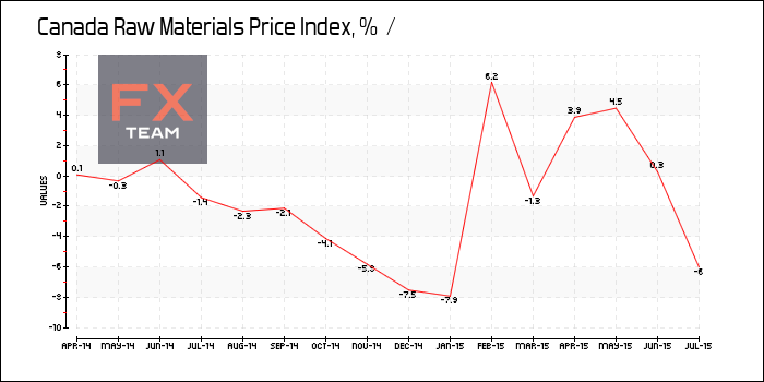 По данным Statistics Canada, индекс цен на сырье в Канаде снизился на 5,9% в июле после повышения на 0,2% в предыдущем месяце.