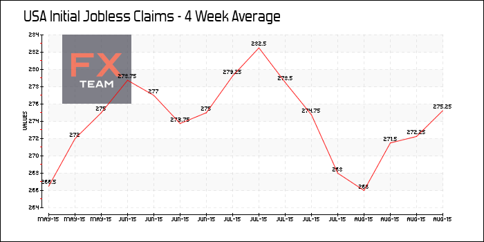 4-недельная средняя первичных обращений за пособием по безработице составила 275 500 по сравнению с уровнем 272 250 на предыдущей неделе.