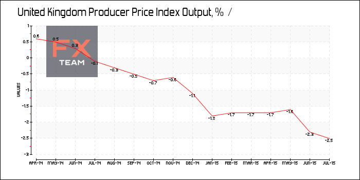Отпускные цены производителей в Великобритании снизились в годовом выражении на 1,8% в августе по сравнению с падением на 1,6% в июле. Эксперты прогнозировали, что снижение цен составит 1,7%.
