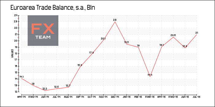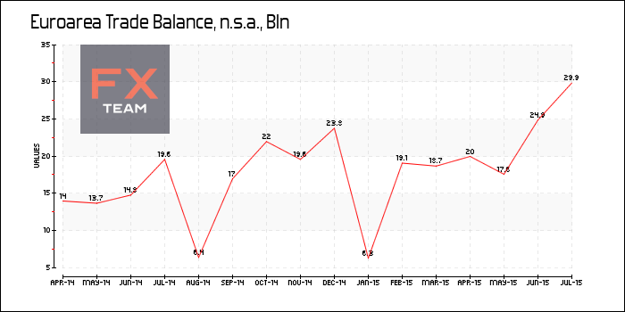 В результате, профицит торгового баланса еврозоны вырос до 31,4 млрд. евро в июле 2015 г. по сравнению с 26,4 млрд. евро в предыдущем месяце, превысив прогнозируемый уровень 26,0 млрд. евро.