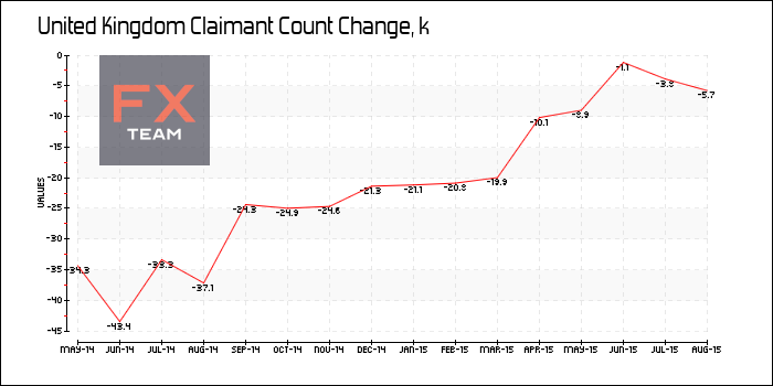 По данным Национального статистического управления, число заявлений на получение пособия по безработице (Claimant count) в Великобритании увеличилось на 1,2 тыс. за август 2015 г. Экономисты прогнозировали сокращение числа заявлений на 5,1 тыс. после снижения на 6,8 тыс. месяцем ранее.
