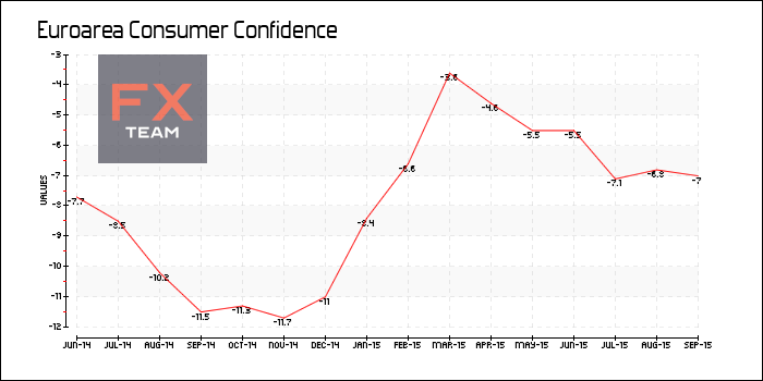 Индикатор потребительской уверенности еврозоны составил -7,1 пункта за сентябрь 2015 г., сообщает Еврокомиссия. Аналитики прогнозировали снижение индекса до -7,0 пункта в сентябре по сравнению с -6,9 пункта в августе.