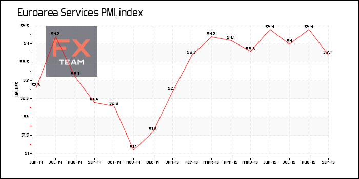 Индекс PMI для сектора услуг Еврозоны упал до 54,0 в сентябре по сравнению с 54,4 в прошлом месяце.