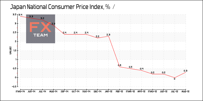 В годовом исчислении индекс потребительских цен Японии составил 0,2% в августе, также как и в предыдущем месяце. Аналитики прогнозировали снижение показателя до 0,1%.