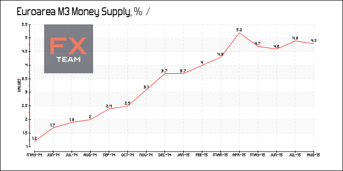 Агрегат M3 денежной массы еврозоны сократился до 4,8% в августе в годовом исчислении по сравнению с 5,3% в июле, сообщает Европейский центральный банк. Аналитики прогнозировали повышение показателя до 5,4%.