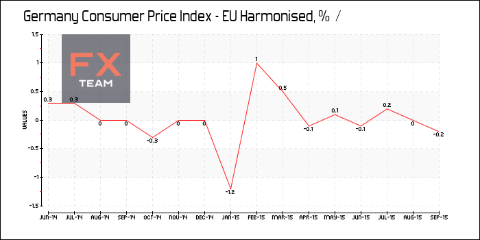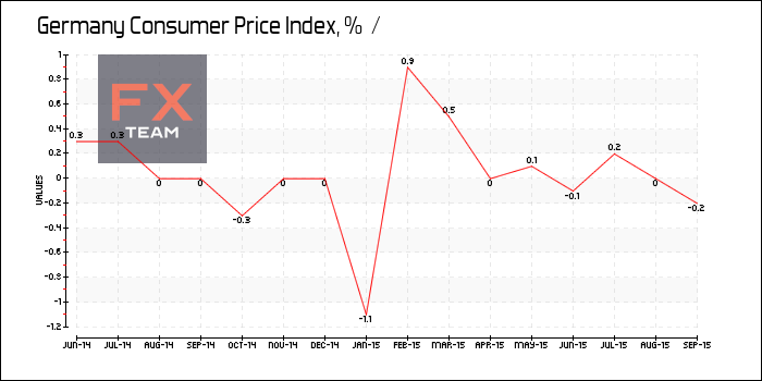 В месячном выражении индекс потребительских цен в Германии снизился на 0,2% в сентябре, в то время как эксперты прогнозировали падение на 0,1%.