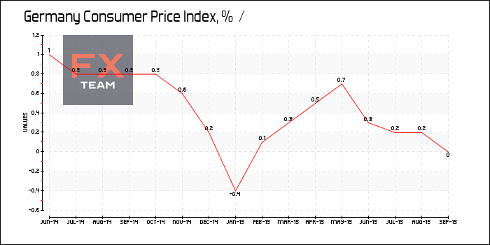 Годовые темпы инфляции в Германии оказались на нулевой отметке в отчетном периоде по сравнению с 0,2% в августе и июле.