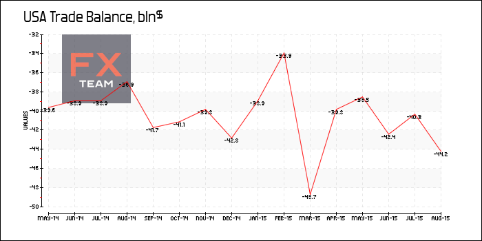 По данным Министерства торговли США, дефицит внешней торговли повысился на 15,6% до $48,3 млрд. в августе, оказавшись на самом высоком уровне с марта текущего года.